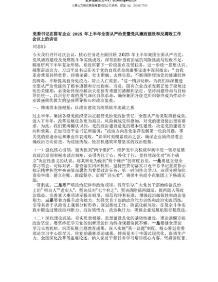 【七哥公文】2025年:【七哥公文】X委书记在国有企业2025年上半年全面从严治X暨X风廉政建设和反腐败工作会议上的讲话+更多免费公文+VX:QiGeGongWen2024+更多免费公文+VX:QiGeGongWen2024