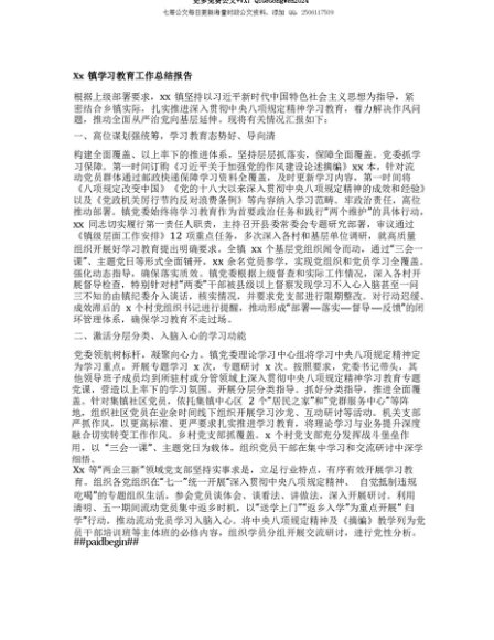 【七哥公文】2025年:【七哥公文】Xx镇学习教育工作总结报告+更多免费公文+VX:QiGeGongWen2024+更多免费公文+VX:QiGeGongWen2024