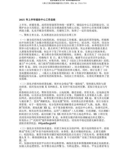 【七哥公文】2025年:【七哥公文】2025年上半年综治中心工作总结+更多免费公文+VX:QiGeGongWen2024+更多免费公文+VX:QiGeGongWen2024