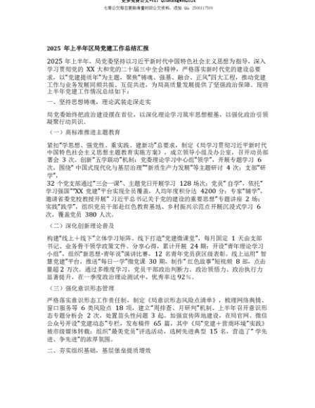 【七哥公文】2025年:【七哥公文】2025年上半年区局X建工作总结汇报+更多免费公文+VX:QiGeGongWen2024+更多免费公文+VX:QiGeGongWen2024