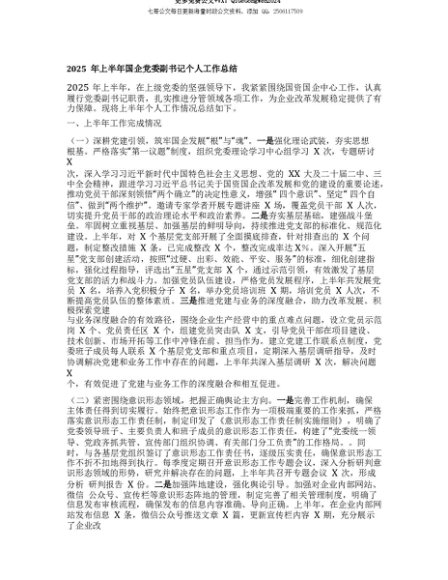 【七哥公文】2025年:【七哥公文】2025年上半年国企X委副书记个人工作总结+更多免费公文+VX:QiGeGongWen2024+更多免费公文+VX:QiGeGongWen2024