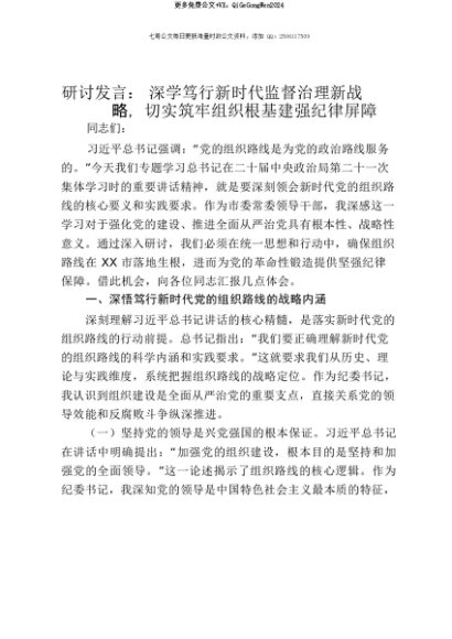 【七哥公文】2025年:【七哥公文】研讨发言:深学笃行新时代监督治理新战略,切实筑牢组织根基建强纪律屏障+更多免费公文+VX:QiGeGongWen2024+更多免费公文+VX:QiGeGongWen2024