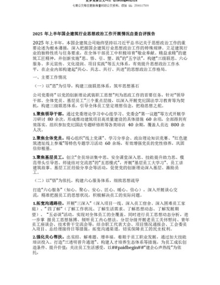 【七哥公文】2025年:【七哥公文】2025年上半年国企建筑行业思想ZZ工作开展情况自查自评报告+更多免费公文+VX:QiGeGongWen2024+更多免费公文+VX:QiGeGongWen2024