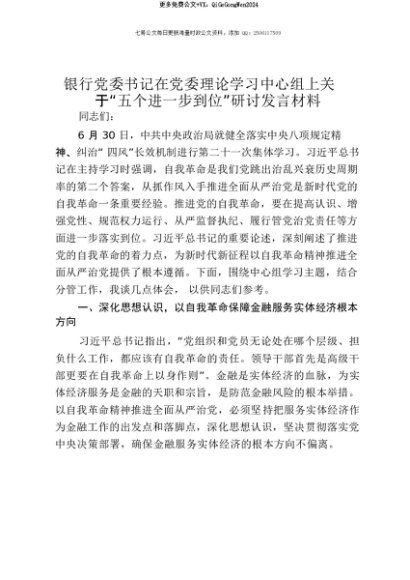 【七哥公文】2025年:【七哥公文】银行党委书记在党委理论学习中心组上关于“五个进一步到位”研讨发言材料+更多免费公文+VX:QiGeGongWen2024+更多免费公文+VX:QiGeGongWen2024
