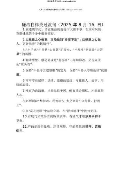 【七哥公文】2025年:【七哥公文】廉洁自律类过渡句(2025年8月16日)+更多免费公文+VX:QiGeGongWen2024+更多免费公文+VX:QiGeGongWen2024