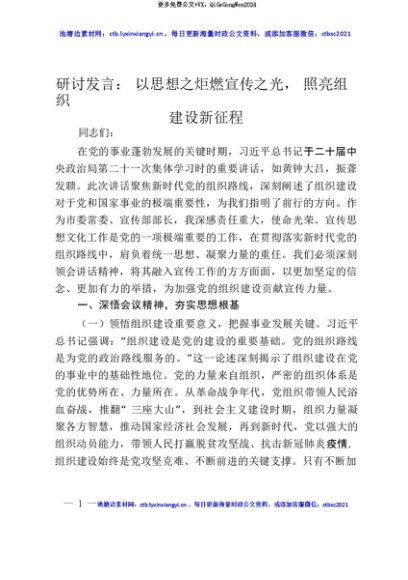 【七哥公文】2025年:【七哥公文】研讨发言:以思想之炬燃宣传之光,照亮组织建设新征程+更多免费公文+VX:QiGeGongWen2024+更多免费公文+VX:QiGeGongWen2024