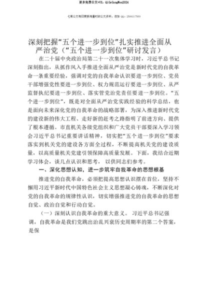 【七哥公文】2025年:【七哥公文】深刻把握“五个进一步到位”扎实推进全面从严治党(“五个进一步到位”研讨发言)+更多免费公文+VX:QiGeGongWen2024+更多免费公文+VX:QiGeGongWen2024