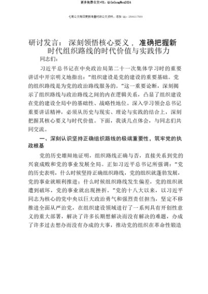 【七哥公文】2025年:【七哥公文】研讨发言:深刻领悟核心要义,准确把握新时代组织路线的时代价值与实践伟力+更多免费公文+VX:QiGeGongWen2024+更多免费公文+VX:QiGeGongWen2024