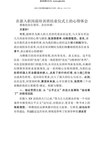 【七哥公文】2025年:【七哥公文】在新入职岗前培训班结业仪式上的心得体会+更多免费公文+VX:QiGeGongWen2024+更多免费公文+VX:QiGeGongWen2024