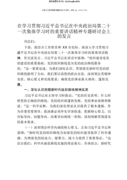 【七哥公文】2025年:【七哥公文】在学习贯彻习近平总书记在中央政治局第二十一次集体学习时的重要讲话精神专题研讨会上的发言+更多免费公文+VX:QiGeGongWen2024+更多免费公文+VX:QiGeGongWen2024