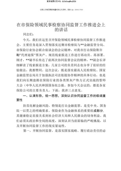【七哥公文】2025年:【七哥公文】在市保险领域民事检察协同监督工作推进会上的讲话+更多免费公文+VX:QiGeGongWen2024+更多免费公文+VX:QiGeGongWen2024