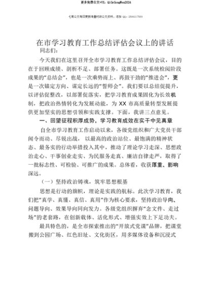 【七哥公文】2025年:【七哥公文】在市贯彻中央八项规定精神学习教育工作总结评估会议上的讲话+更多免费公文+VX:QiGeGongWen2024+更多免费公文+VX:QiGeGongWen2024