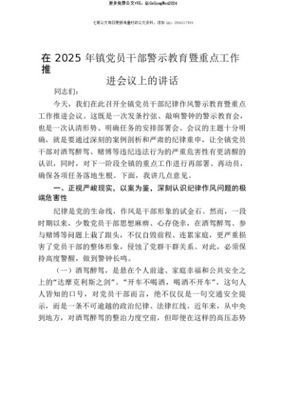 【七哥公文】2025年:【七哥公文】在2025年镇党员干部警示教育暨重点工作推进会议上的讲话+更多免费公文+VX:QiGeGongWen2024+更多免费公文+VX:QiGeGongWen2024