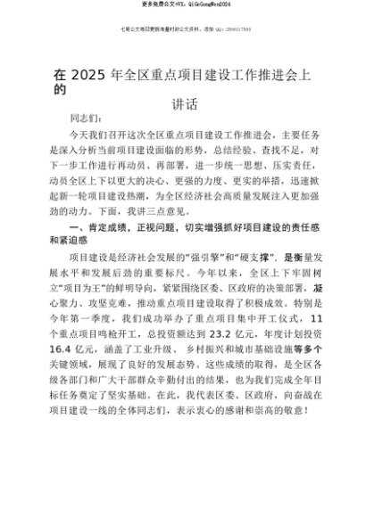 【七哥公文】2025年:【七哥公文】在2025年全区重点项目建设工作推进会上的讲话+更多免费公文+VX:QiGeGongWen2024+更多免费公文+VX:QiGeGongWen2024