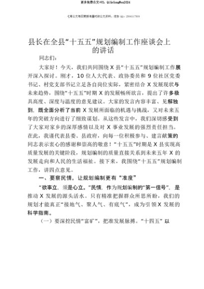 【七哥公文】2025年:【七哥公文】县长在全县“十五五”规划编制工作座谈会上的讲话+更多免费公文+VX:QiGeGongWen2024+更多免费公文+VX:QiGeGongWen2024