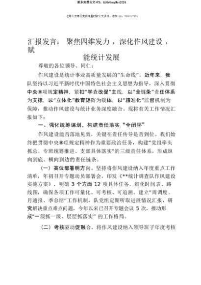 【七哥公文】2025年:【七哥公文】贯彻中央八项规定精神汇报发言:聚焦四维发力,深化作风建设,赋能统计发展+更多免费公文+VX:QiGeGongWen2024+更多免费公文+VX:QiGeGongWen2024