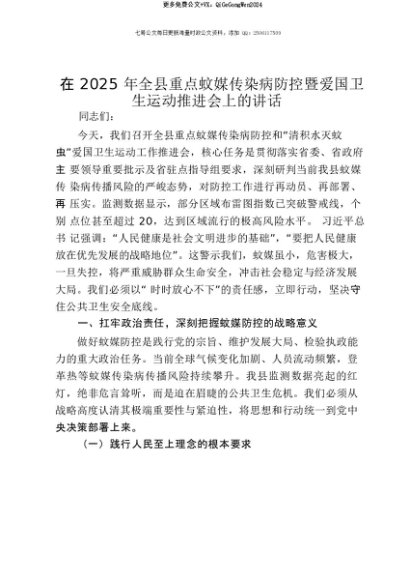 【七哥公文】2025年:【七哥公文】在2025年全县重点蚊媒传染病防控暨爱国卫生运动推进会上的讲话+更多免费公文+VX:QiGeGongWen2024+更多免费公文+VX:QiGeGongWen2024