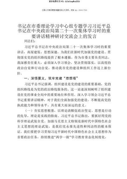 【七哥公文】2025年:【七哥公文】书记在市委理论学习中心组专题学习习近平总书记在中央政治局第二十一次集体学习时的重要讲话精神研讨交流会上的发言+更多免费公文+VX:QiGeGongWen2024+更多免费公文+VX:QiGeGongWen2024