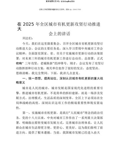 【七哥公文】2025年:【七哥公文】在2025年全区城市有机更新攻坚行动推进大会上的讲话+更多免费公文+VX:QiGeGongWen2024+更多免费公文+VX:QiGeGongWen2024