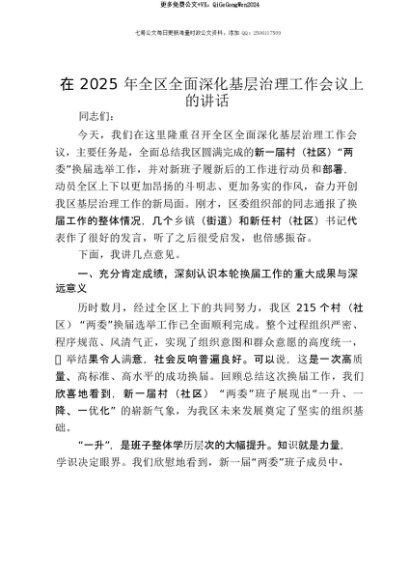 【七哥公文】2025年:【七哥公文】在2025年全区全面深化基层治理工作会议上的讲话+更多免费公文+VX:QiGeGongWen2024+更多免费公文+VX:QiGeGongWen2024