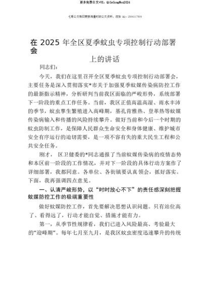 【七哥公文】2025年:【七哥公文】在2025年全区夏季蚊虫专项控制行动部署会上的讲话+更多免费公文+VX:QiGeGongWen2024+更多免费公文+VX:QiGeGongWen2024