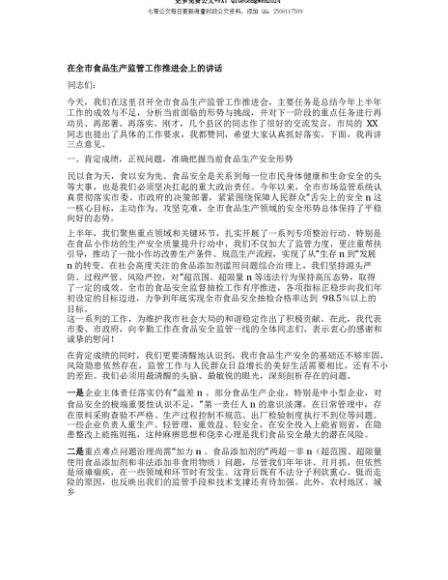 【七哥公文】2025年:【七哥公文】【团队精品】在全市食品生产监管工作推进会上的讲话+更多免费公文+VX:QiGeGongWen2024+更多免费公文+VX:QiGeGongWen2024