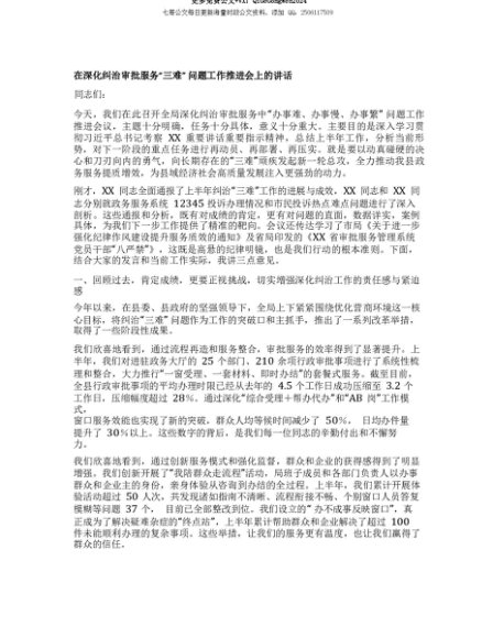 【七哥公文】2025年:【七哥公文】【团队精品】在深化纠治审批服务“三难”问题工作推进会上的讲话+更多免费公文+VX:QiGeGongWen2024+更多免费公文+VX:QiGeGongWen2024