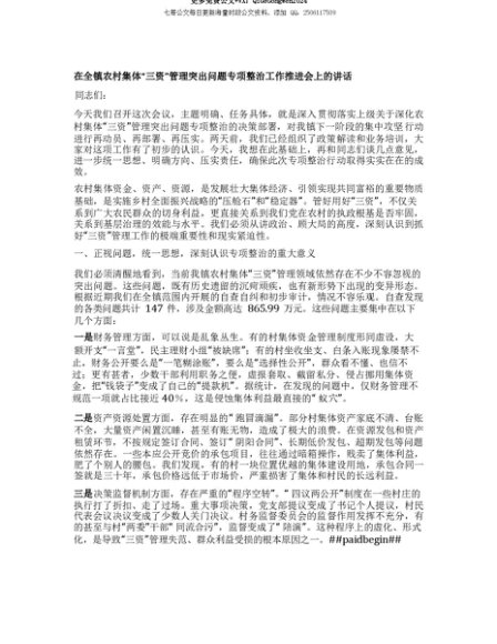 【七哥公文】2025年:【七哥公文】【团队精品】在全镇农村集体“三资”管理突出问题专项整治工作推进会上的讲话+更多免费公文+VX:QiGeGongWen2024+更多免费公文+VX:QiGeGongWen2024