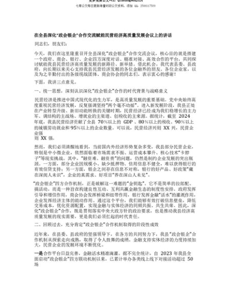 【七哥公文】2025年:【七哥公文】【团队精品】在全县深化“政会银企”合作交流赋能民营经济高质量发展会议上的讲话+更多免费公文+VX:QiGeGongWen2024+更多免费公文+VX:QiGeGongWen2024
