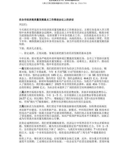 【七哥公文】2025年:【七哥公文】【团队精品】在全市经济高质量发展重点工作推进会议上的讲话+更多免费公文+VX:QiGeGongWen2024+更多免费公文+VX:QiGeGongWen2024