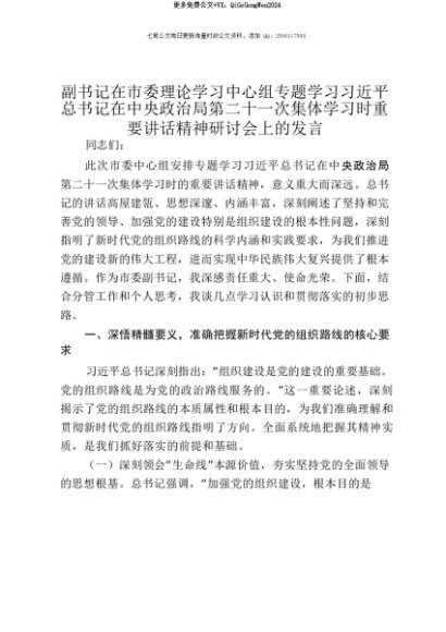 【七哥公文】2025年:【七哥公文】副书记在市委理论学习中心组专题学习习近平总书记在中央政治局第二十一次集体学习时重要讲话精神研讨会上的发言+更多免费公文+VX:QiGeGongWen2024+更多免费公文+VX:QiGeGongWen2024