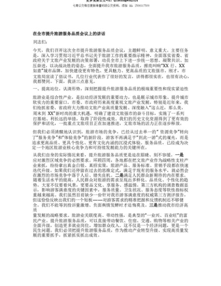 【七哥公文】2025年:【七哥公文】【团队精品】在全市提升旅游服务品质会议上的讲话+更多免费公文+VX:QiGeGongWen2024+更多免费公文+VX:QiGeGongWen2024