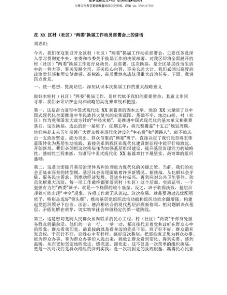 【七哥公文】2025年:【七哥公文】【团队精品】在XX区村(社区)“两委”换届工作动员部署会上的讲话+更多免费公文+VX:QiGeGongWen2024+更多免费公文+VX:QiGeGongWen2024