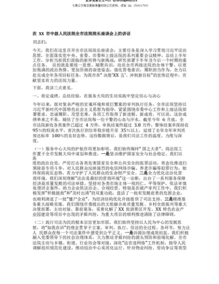 【七哥公文】2025年:【七哥公文】【团队精品】在XX市中级人民法院全市法院院长座谈会上的讲话+更多免费公文+VX:QiGeGongWen2024+更多免费公文+VX:QiGeGongWen2024