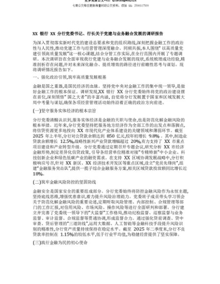 【七哥公文】2025年:【七哥公文】【团队精品】XX银行XX分行X委书记、行长关于X建与业务融合发展的调研报告+更多免费公文+VX:QiGeGongWen2024+更多免费公文+VX:QiGeGongWen2024