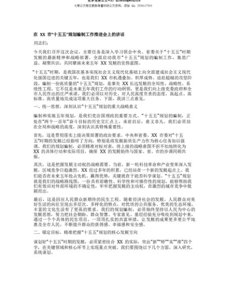【七哥公文】2025年:【七哥公文】【团队精品】在XX市“十五五”规划编制工作推进会上的讲话+更多免费公文+VX:QiGeGongWen2024+更多免费公文+VX:QiGeGongWen2024