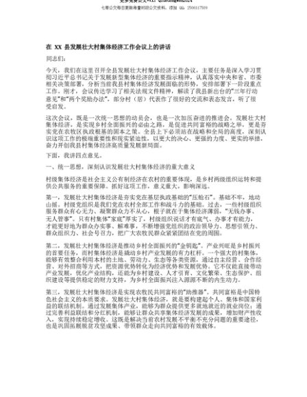 【七哥公文】2025年:【七哥公文】【团队精品】在XX县发展壮大村集体经济工作会议上的讲话+更多免费公文+VX:QiGeGongWen2024+更多免费公文+VX:QiGeGongWen2024
