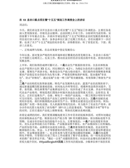 【七哥公文】2025年:【七哥公文】【团队精品】在XX县农口重点项目暨“十五五”规划工作调度会上的讲话+更多免费公文+VX:QiGeGongWen2024+更多免费公文+VX:QiGeGongWen2024
