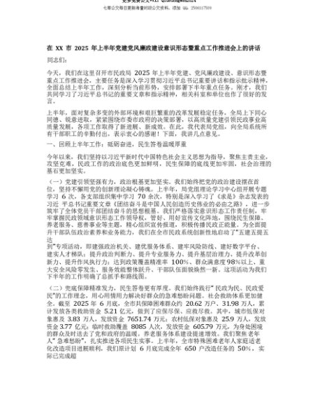 【七哥公文】2025年:【七哥公文】【团队精品】在XX市2025年上半年X建X风廉政建设意识形态暨重点工作推进会上的讲话+更多免费公文+VX:QiGeGongWen2024+更多免费公文+VX:QiGeGongWen2024