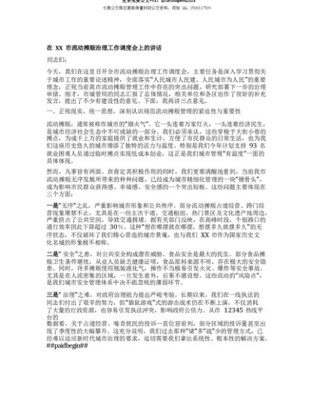 【七哥公文】2025年:【七哥公文】【团队精品】在XX市流动摊贩治理工作调度会上的讲话+更多免费公文+VX:QiGeGongWen2024+更多免费公文+VX:QiGeGongWen2024