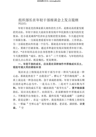 【七哥公文】2025年:【七哥公文】组织部长在年轻干部座谈会上发言提纲_20250815_213030+更多免费公文+VX:QiGeGongWen2024+更多免费公文+VX:QiGeGongWen2024