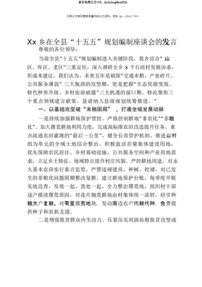 【七哥公文】2025年:【七哥公文】Xx乡在全县“十五五”规划编制座谈会的发言+更多免费公文+VX:QiGeGongWen2024+更多免费公文+VX:QiGeGongWen2024