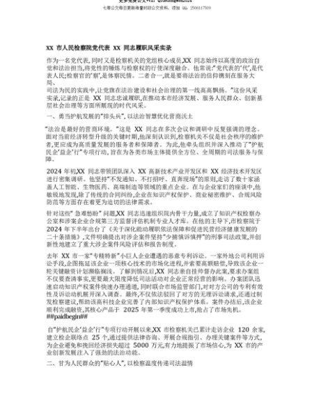 【七哥公文】2025年:【七哥公文】【团队精品】XX市人民检察院X代表XX同志履职风采实录+更多免费公文+VX:QiGeGongWen2024+更多免费公文+VX:QiGeGongWen2024