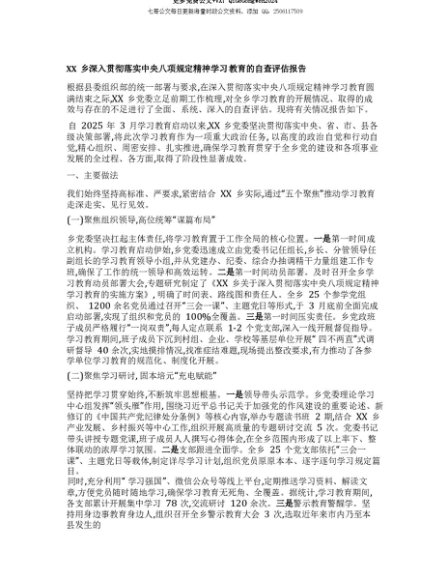 【七哥公文】2025年:【七哥公文】【团队精品】XX乡深入贯彻落实中央BXGD精神学习教育的自查评估报告+更多免费公文+VX:QiGeGongWen2024+更多免费公文+VX:QiGeGongWen2024