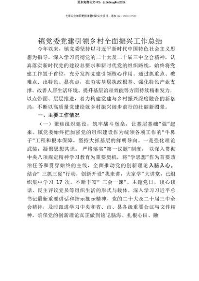 【七哥公文】2025年:【七哥公文】镇党委党建引领乡村全面振兴工作总结+更多免费公文+VX:QiGeGongWen2024+更多免费公文+VX:QiGeGongWen2024