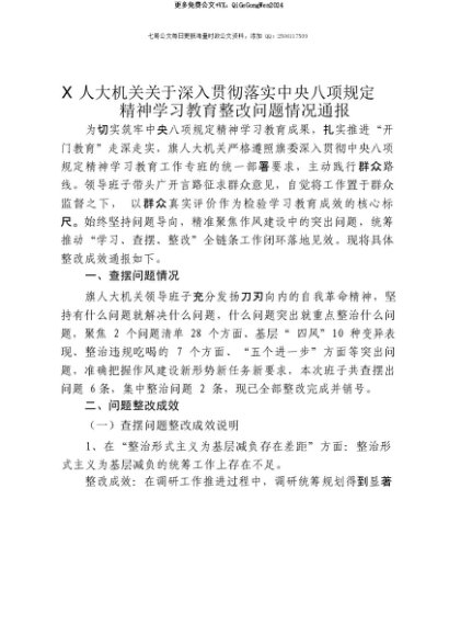【七哥公文】2025年:【七哥公文】X人大机关关于深入贯彻落实中央八项规定精神学习教育整改问题情况通报+更多免费公文+VX:QiGeGongWen2024+更多免费公文+VX:QiGeGongWen2024