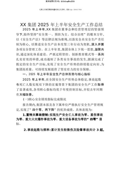 【七哥公文】2025年:【七哥公文】XX集团2025年上半年安全生产工作总结+更多免费公文+VX:QiGeGongWen2024+更多免费公文+VX:QiGeGongWen2024