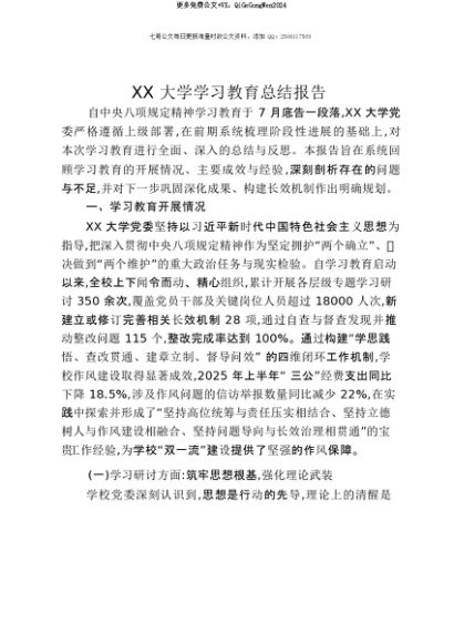 【七哥公文】2025年:【七哥公文】XX大学贯彻中央八项规定精神学习教育总结报告+更多免费公文+VX:QiGeGongWen2024+更多免费公文+VX:QiGeGongWen2024