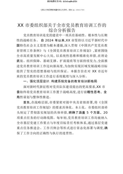 【七哥公文】2025年:【七哥公文】XX市委组织部关于全市党员教育培训工作的综合分析报告+更多免费公文+VX:QiGeGongWen2024+更多免费公文+VX:QiGeGongWen2024