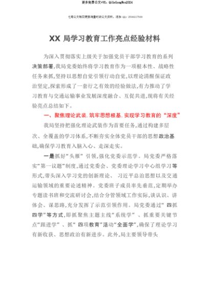 【七哥公文】2025年:【七哥公文】XX局贯彻中央八项规定精神学习教育工作亮点经验材料+更多免费公文+VX:QiGeGongWen2024+更多免费公文+VX:QiGeGongWen2024
